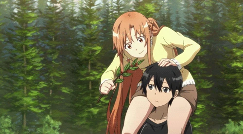 Palier 55 Avant le Secteur du Labyrinthe Asuna arrive à temps pour sauver Kirito. Ce dernier perd la main gauche pour la protéger et l'embrasse.