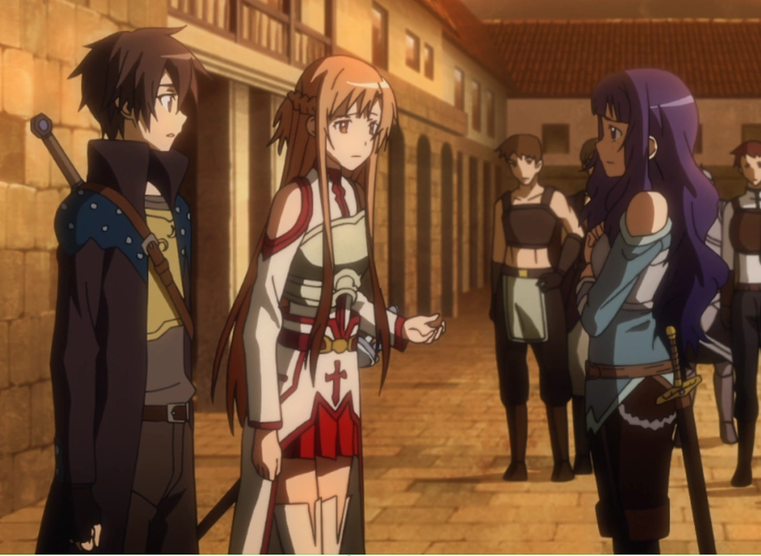 A la sortie de la réunion, Agil retrouve Kirito , mettant en avant les disputes incessantes entre l'épéiste noir et Asuna. Le joueur solo se remémore alors qu'il est celui ayant conseillé à la jeune fille d'entrer dans une guilde si on le lui proposait, avant de finalement dire qu'il suppose qu'ils ne pouvaient surement pas s'entendre, tout simplement.