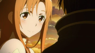 Асуна закрывает Кирито своим телом