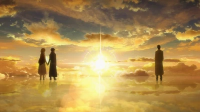 Через некоторое время Кирито приходит в себя. Он видит бескрайнее небо и полупрозрачный пол, на котором он сидит. В этот момент его окликают, он оборачивается и видит Асуну. Кирито извиняется и говорит, что судя по-всему, он тоже умер. Но Асуна рада его видеть. Они задумываются о том, куда же они попали. Взглянув вниз, они видят колоссальную крепость Айнкрад. Крепость, распадающуюся на части. В своем профайле Кирито обнаруживает отчет об состоянии дефрагментации данных с серверов SAO. Внезапно, он слышит риторический вопрос: «Правда захватывающее зрелище?» - и видит рядом с собой Каябу, но на этот раз не Хитклиффа, а реальную копию. Каяба рассказывает о своих мотивах, затем поздравляет Кирито и Асуну с прохождением игры и исчезает. Асуна и Кирито успевают сказать друг другу свои настоящие имена. Кирито говорит, что его зовут Кадзуто Киригая, и ему в этом году исполнилось 16 лет. Асуна понимает, что Кадзуто действительно младше её, после чего говорит, что её зовут Асуна Юки, и ей уже 17 лет. Оказывается, что она всё это время использовала в игре своё настоящее имя. Затем они, обнявшись, исчезают.